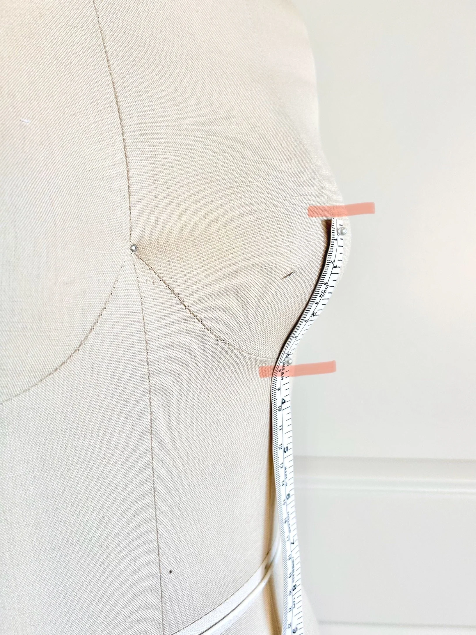 Measure vertically from the underbust line at the centre of the breast to just above the nipple