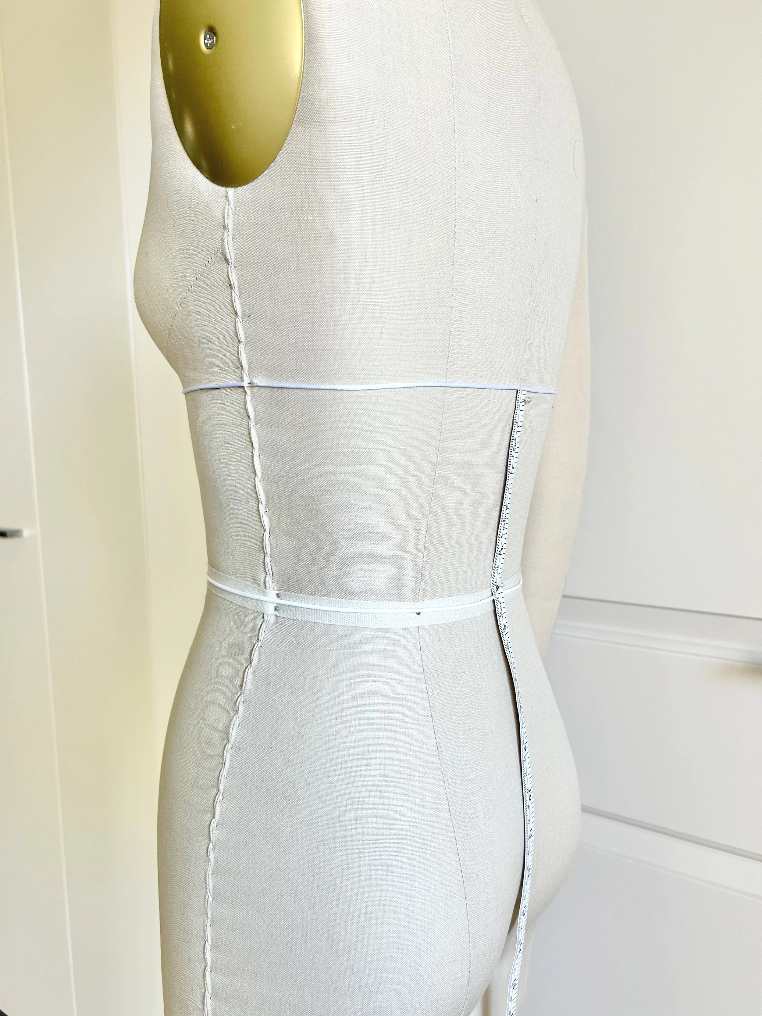 Measure the underbust line from the centre front, around the torso, and back to the centre front. The underbust line is where your bra sits, underneath the crease of the breast as it meets the body