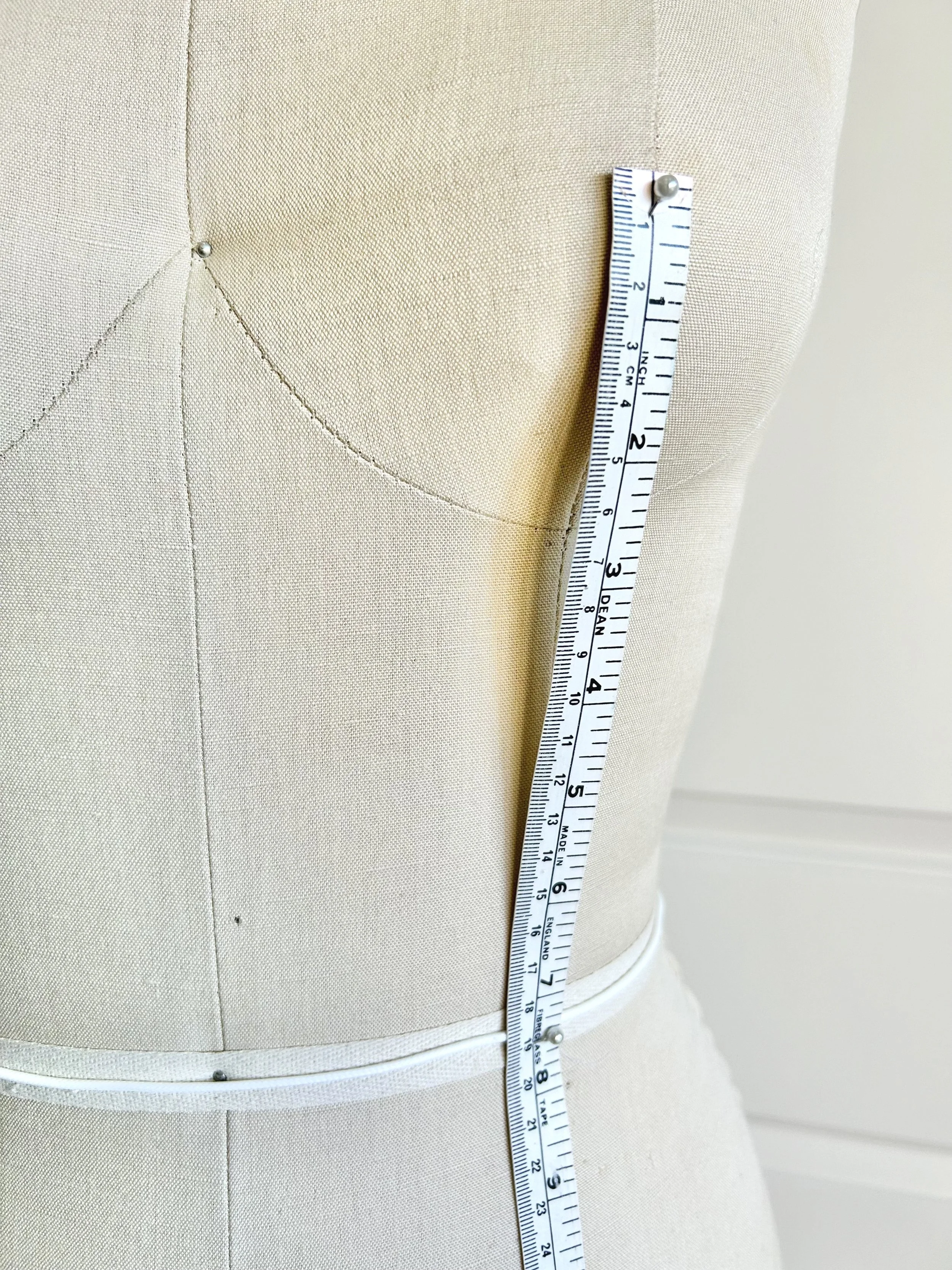 Using the elastic/string tied around your waist as a reference, measure the vertical space between the underbust line and the waistline