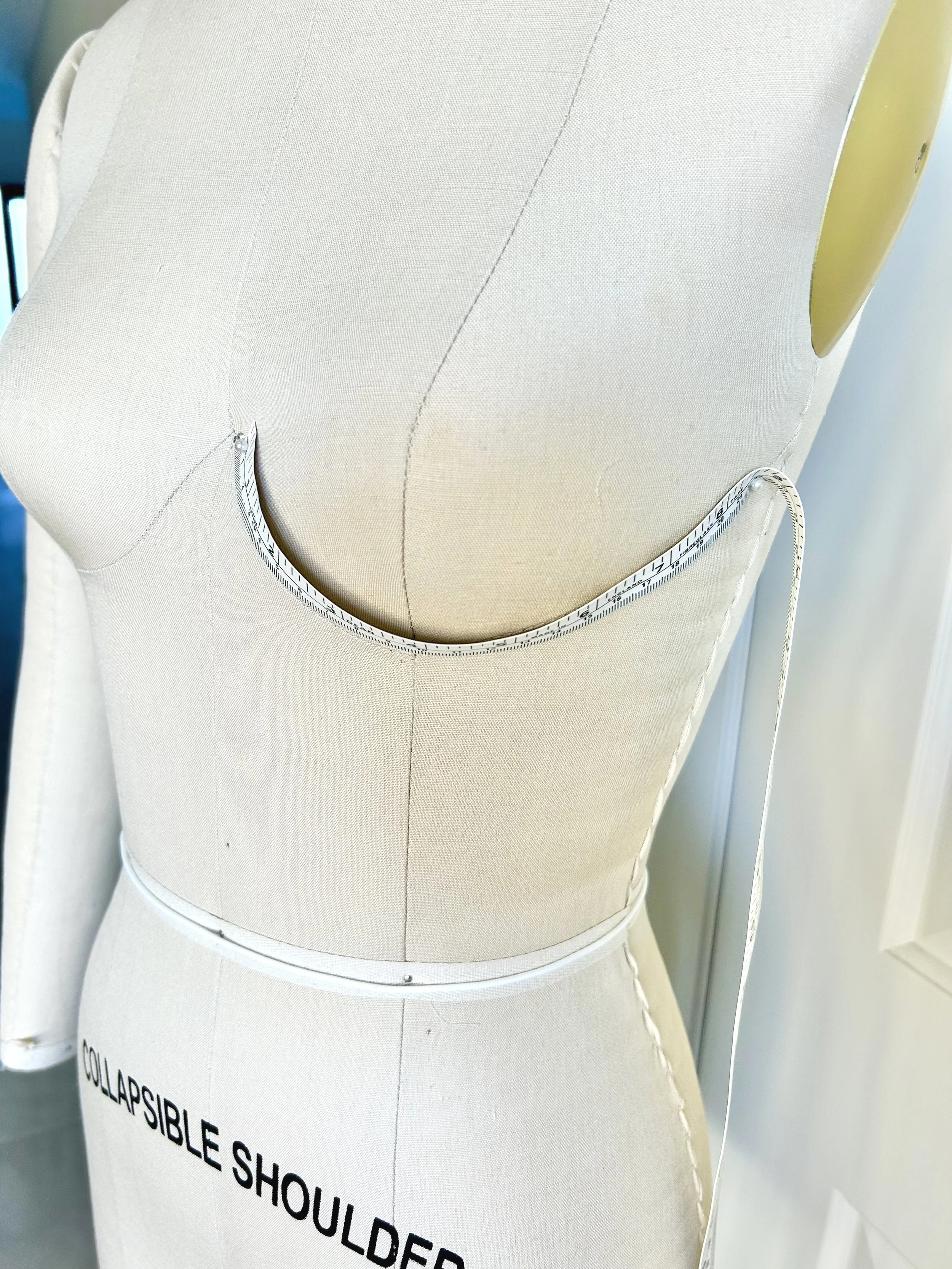 Measure the U-shaped curve under the bust from the centre of the chest to the side under the armpit. Alternatively, you can use an underwire bra that fits you really well and measure the length of the underwire directly from that. I highly recommend taking both measurements if you have an underwire bra to compare it to for accuracy